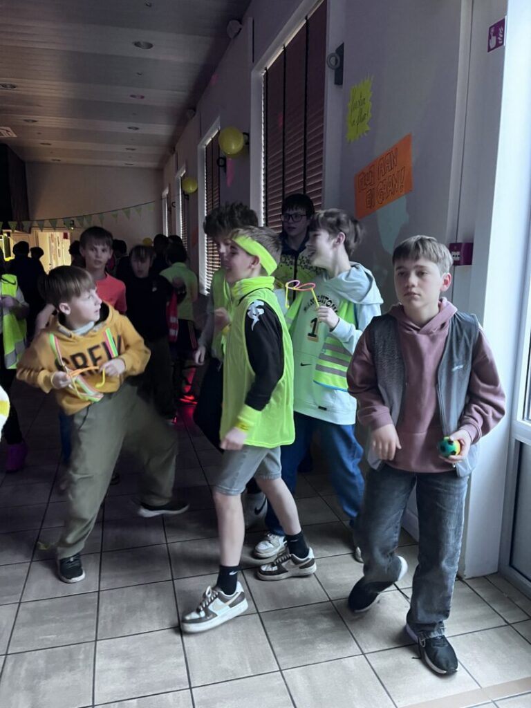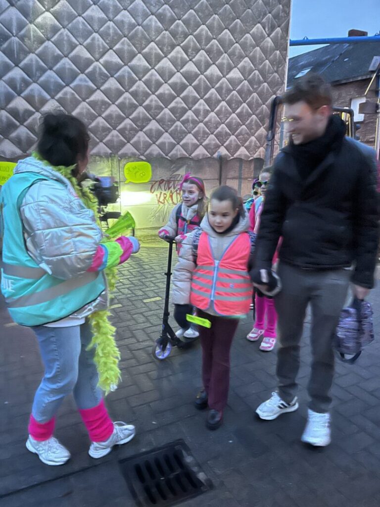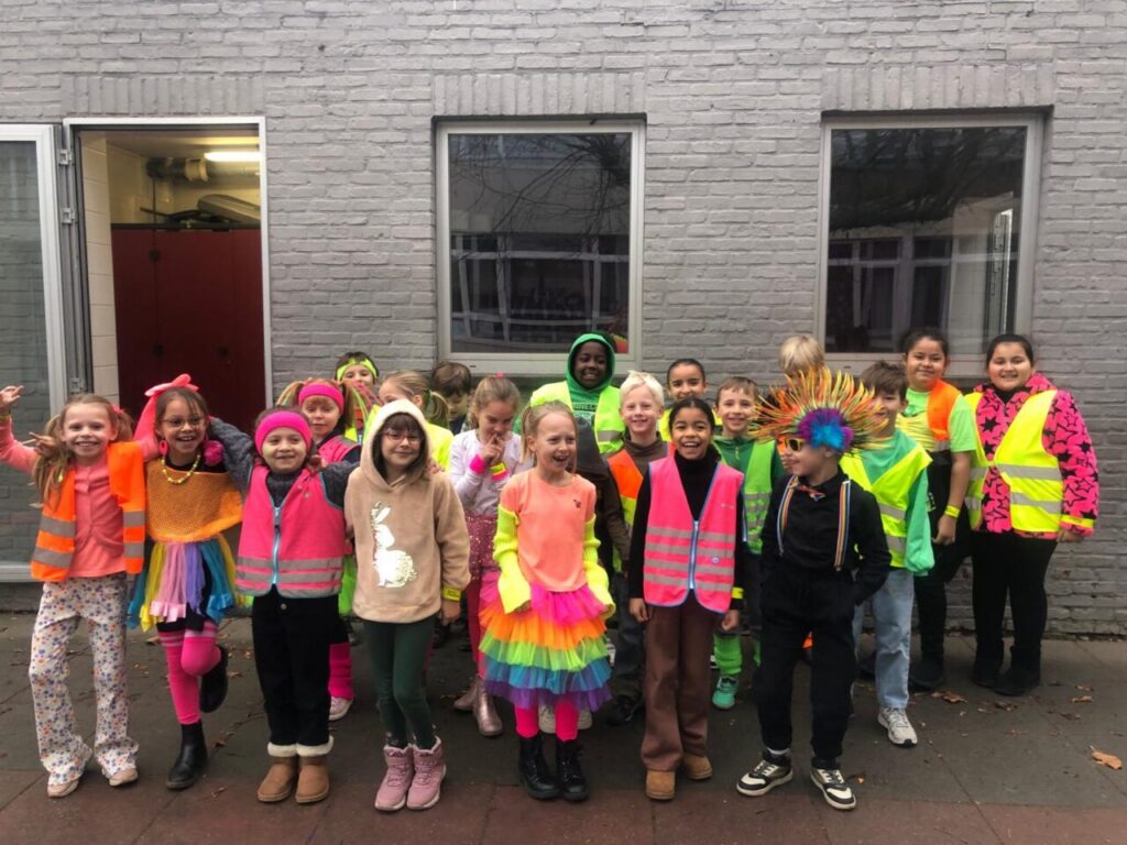 Onze school kleurde extra fel dankzij een geslaagde fluo-actie aan de schoolpoort.